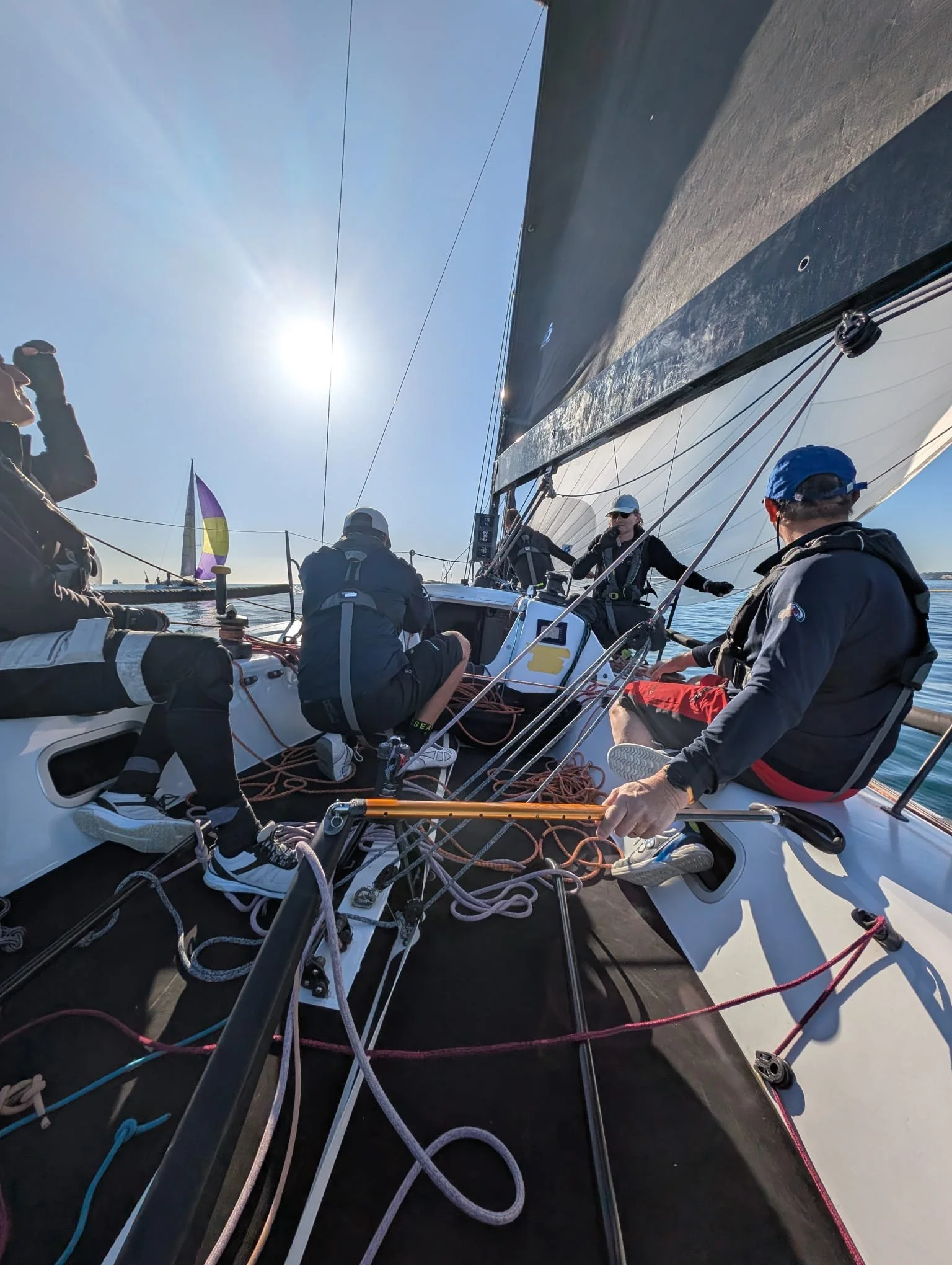 The race start went well initially—we had a clean run off the line. But then the start was recalled after another boat crossed early. On the restart, a critical fitting on the boom kicker slipped out, and we lost several minutes fixing it while the rest of the fleet sailed off. Not the beginning we hoped for.